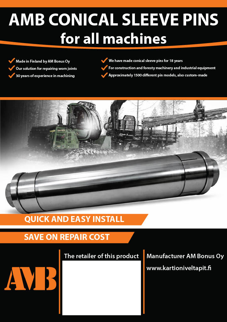 AMB conical sleeve pins are a solution for fixing and initial setup of forest-, earthmoving and industry machine joints. We have over a 1000 premade models for common machine brands. Check them out HERE.